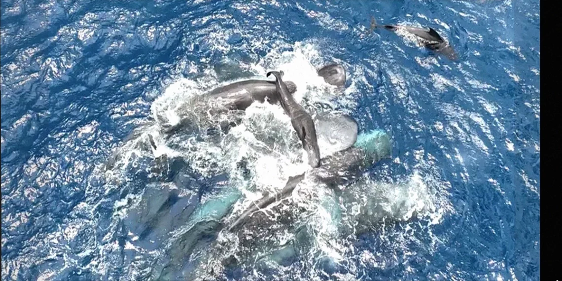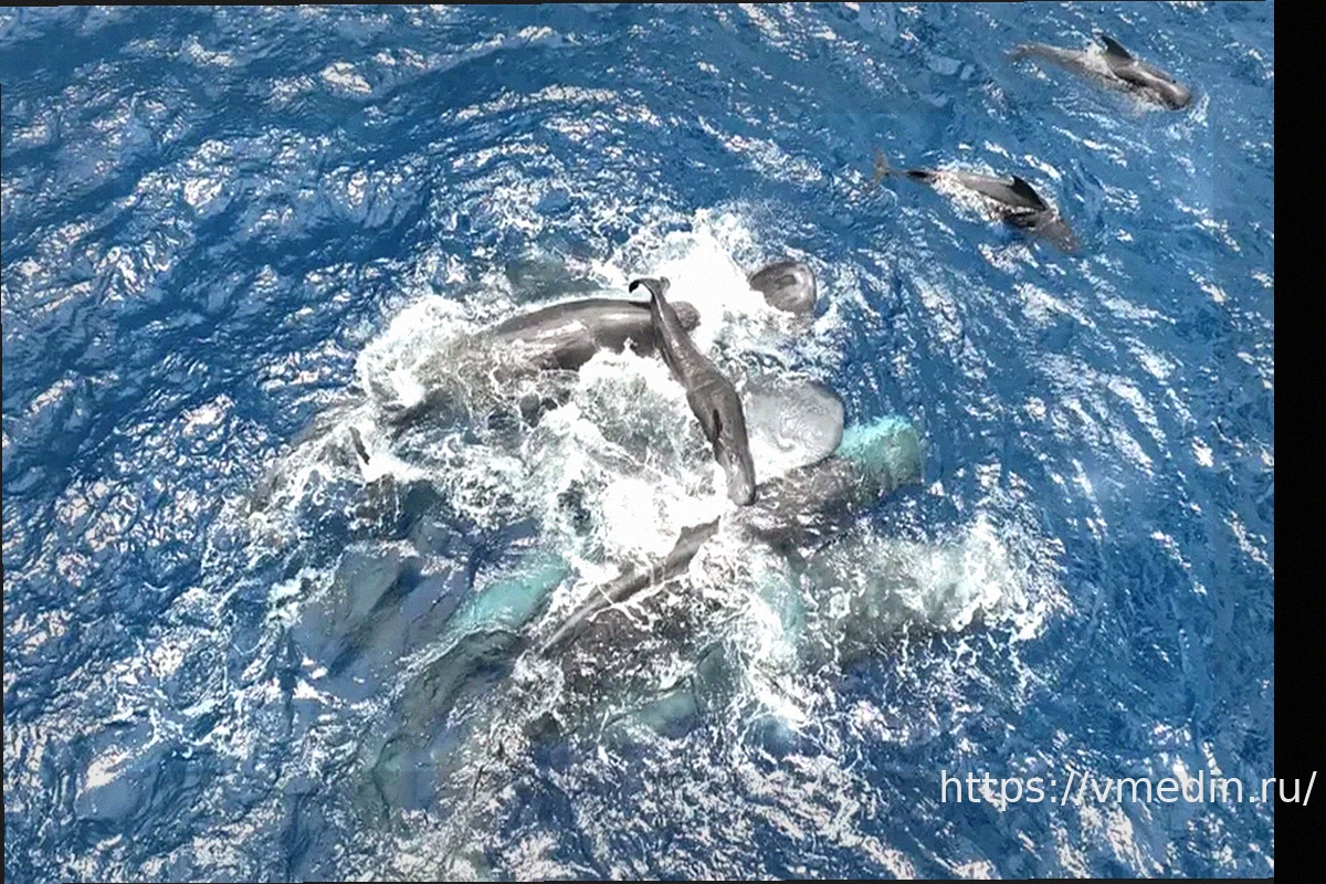 Ученые совершили прорыв, впервые в мире запечатлев на видео невероятно детальные кадры рождения кашалота. Запись демонстрирует, как другие киты сбиваются защитно вокруг матери, активно помогая поднять новорожденного детеныша на поверхность воды.