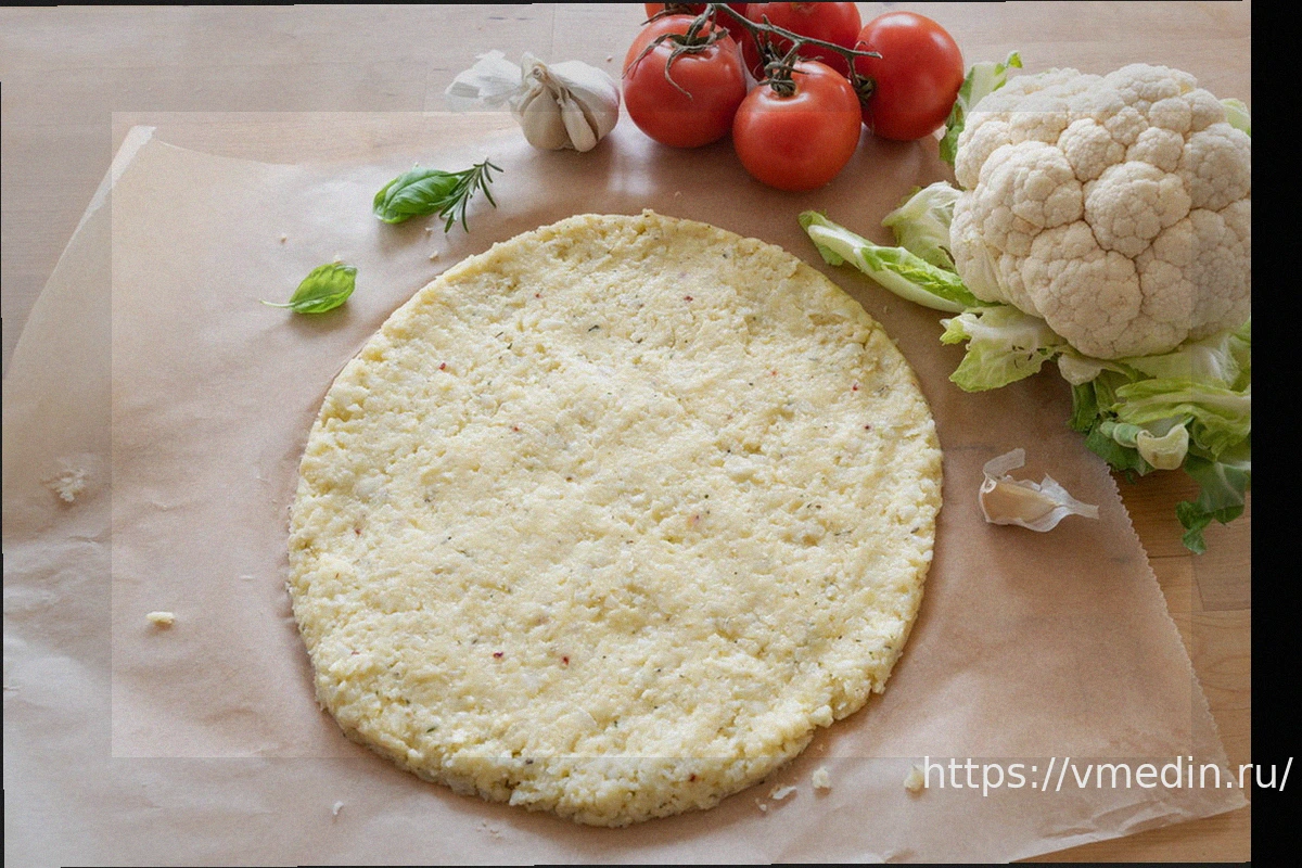 Оригинальный рецепт содержал ссылку на видео с подробными инструкциями. Ниже приведены общие шаги для приготовления низкоуглеводной пиццы с основой из цветной капусты: