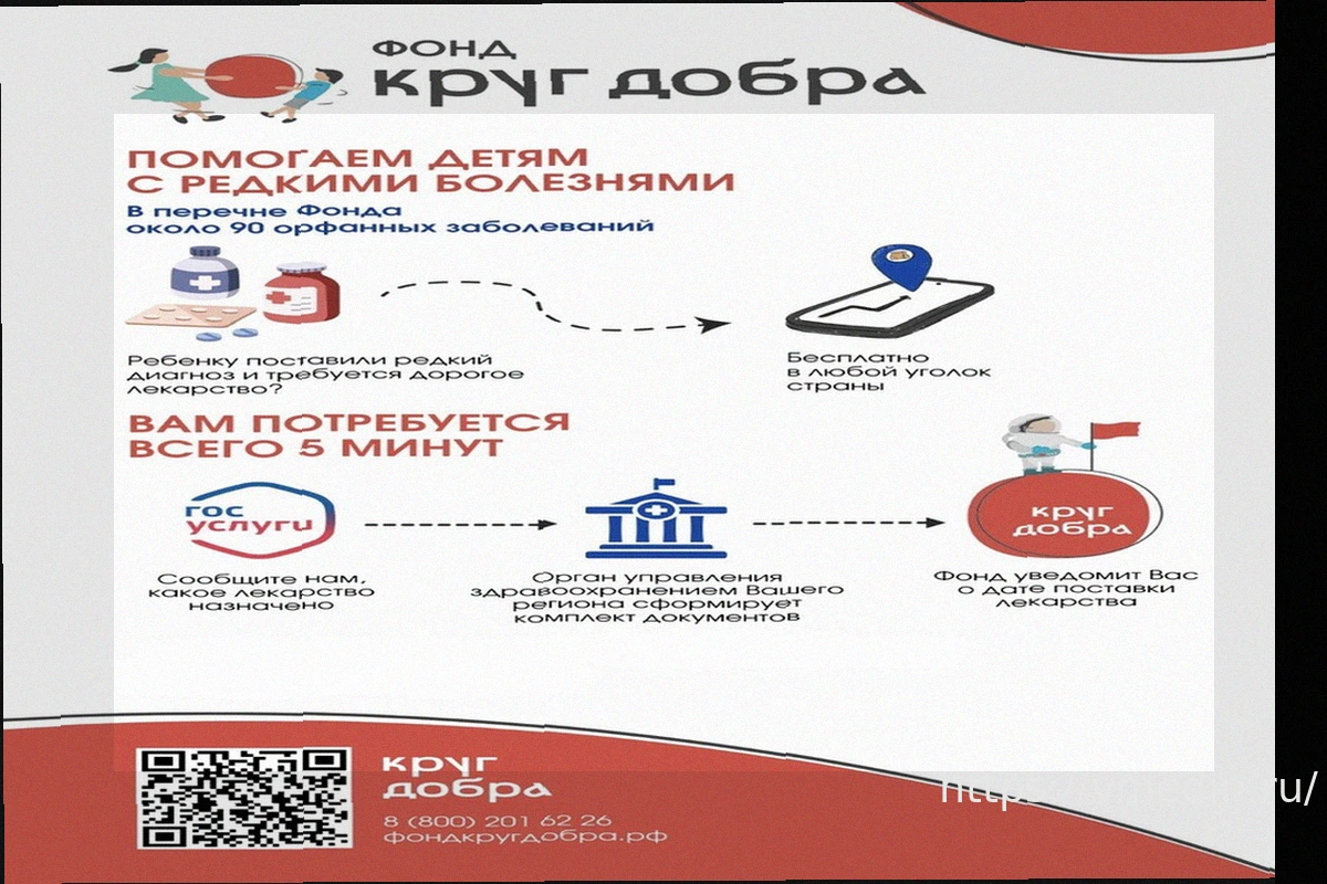 Благотворительный фонд «Круг добра» активно занимается оказанием поддержки детям, чьи жизни оказались под угрозой из-за редких (орфанных) заболеваний. Деятельность организации направлена на обеспечение маленьких пациентов необходимым лечением, дорогостоящими медикаментами и специализированной помощью.