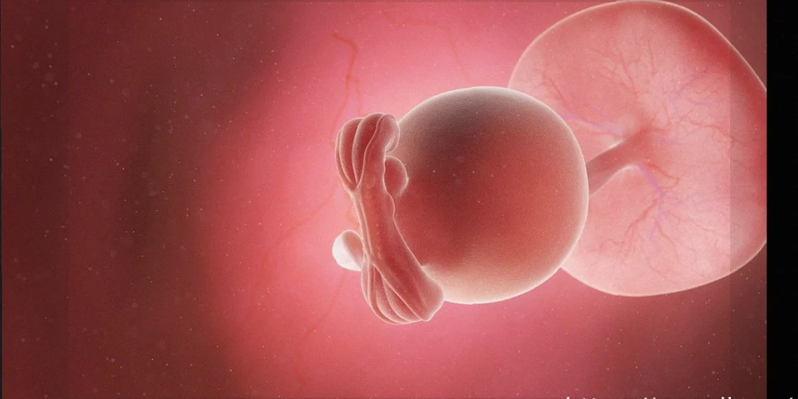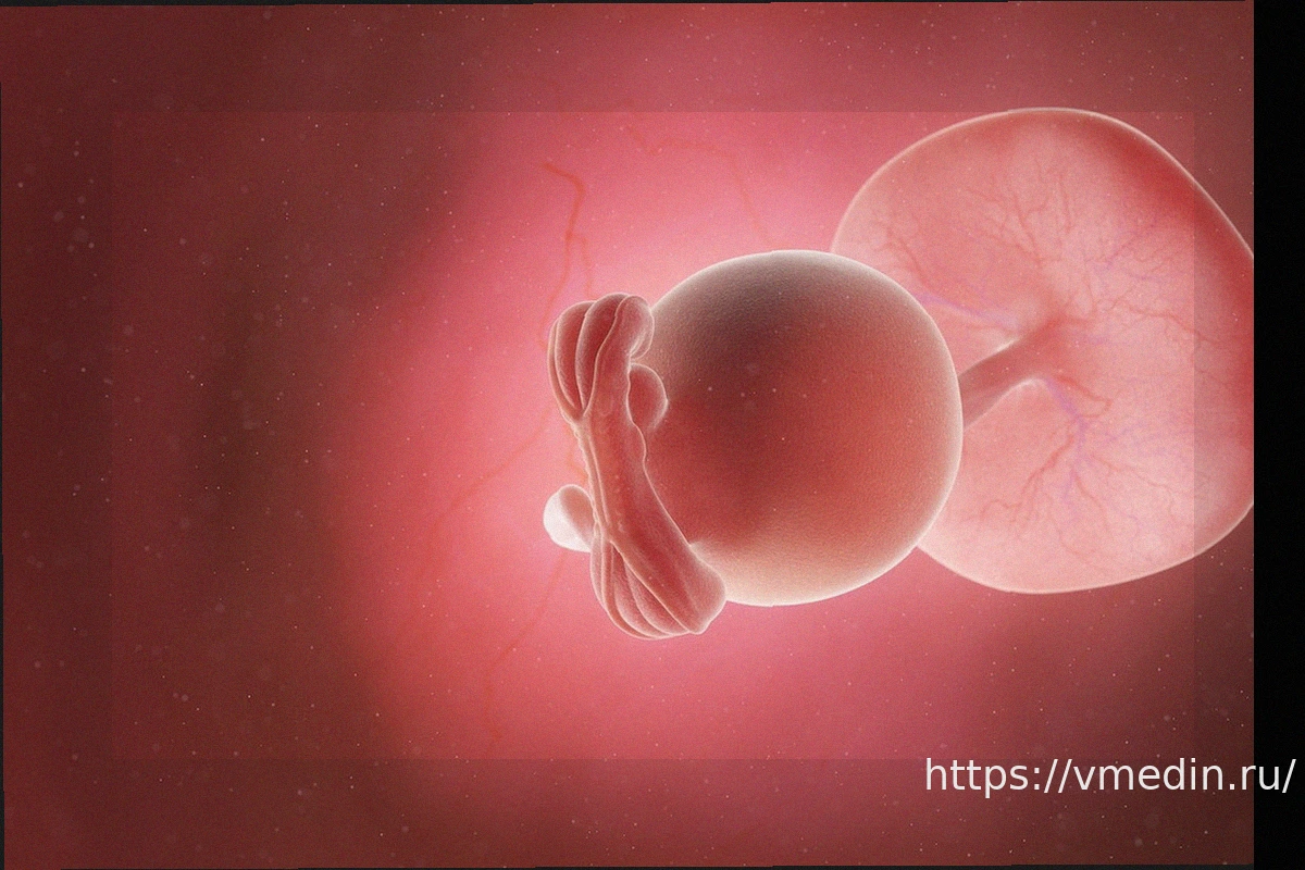 Примитивная плацента и пуповина, которые поставляют питательные вещества и кислород ребенку, уже функционируют, а амниотический мешок сформирован.